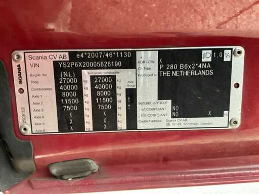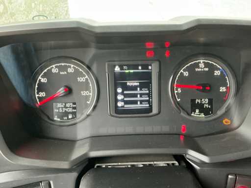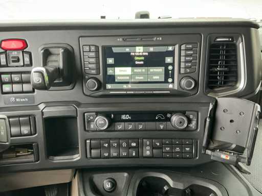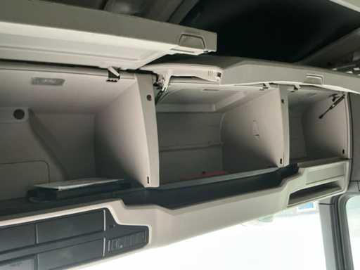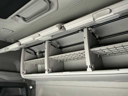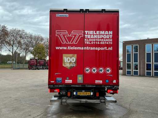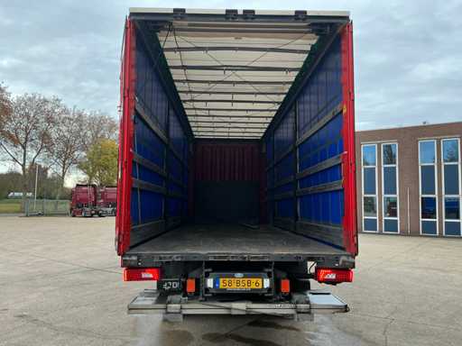 Eigen gewicht 12100kg, max massa 27000kg, max massa samenstel 27000kg; wielbasis 650cm, Dhollandia laadklep, luchtgeveerde achter-as, climatecontrol/airco, cruisecontrol, meesturende achteras met heffunctie,lane-departure en Hill-assist, luchtgeveerde bestuurdersstoel,1 bed, dak en zijkanten voorzien van schuifzeilen, AC/DC inverter