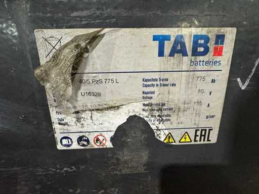 Accu: 15/10/2021 80V 775Ah, met zeer goede prestaties; gemeten met 82,5V