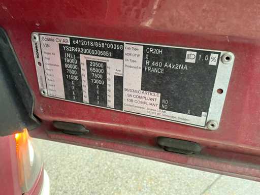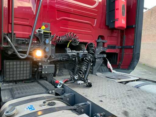 Wettelijke max massa voertuig 19000kg, technische max massa voertuig 20500kg, max massa samenstel 50000kg, max opleggertrekgewicht 41626kg., voorzien van retarder, 615 liter brandstoftank, 24/230 volt inverter, climatecontrol/airco, koelkast, cruisecontrol, 1 bed, motorstoringlampje brandt oorzaak onbekend.