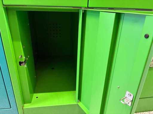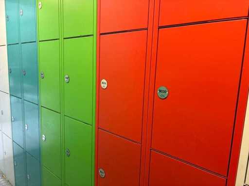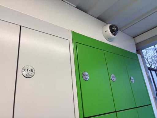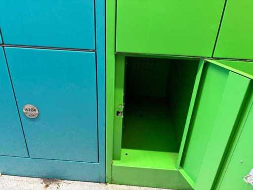 De faciliteit omvat 98 kleine kluisjes, 63 grote kluisjes, 2 bedieningsterminals, gekleurd in groen, oranje en blauw