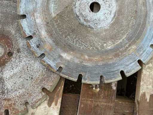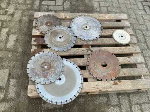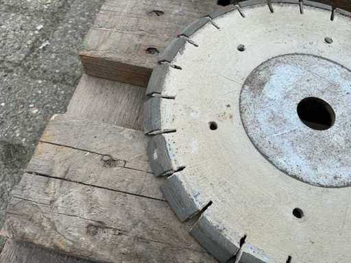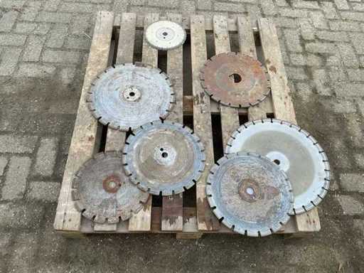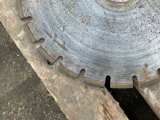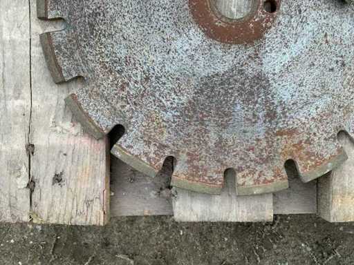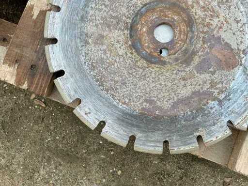 Voorzien van: Diamant vloer zaag bladen. Adamas high speed diamond solutions. 1x asgat rond 600mm, 350mm doorsnede. 6x asgat 250mm, 230mm 400mm 350mm, 350mm, 400mm