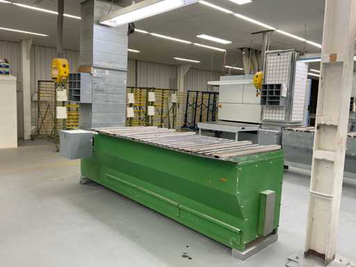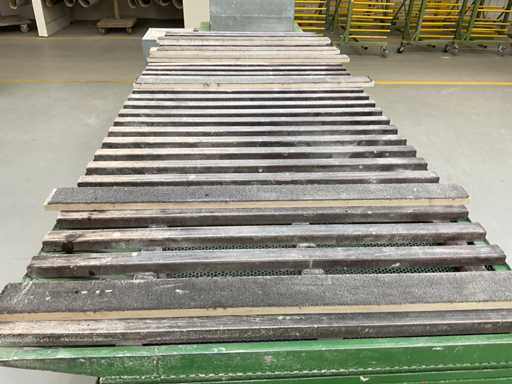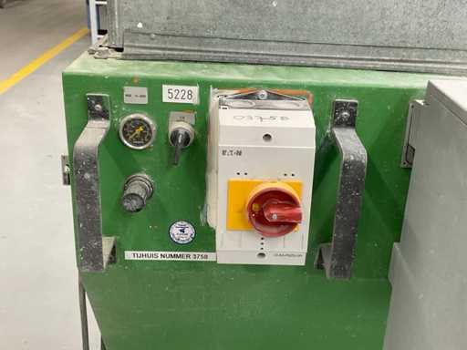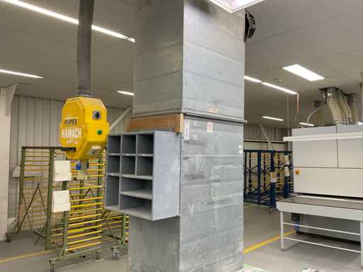 tafel afm. ca. 2500x950 mm; v.v. gegalvaniseerd stalen filterkast
