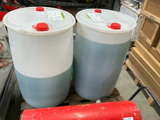 Capaciteit tot -40° celcius, Waarvan 1x geseald en 1x aangebroken 200liter kunststof vat