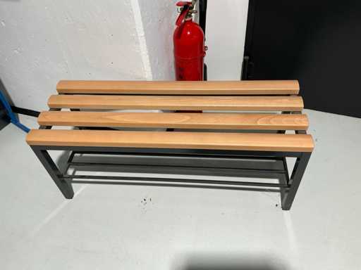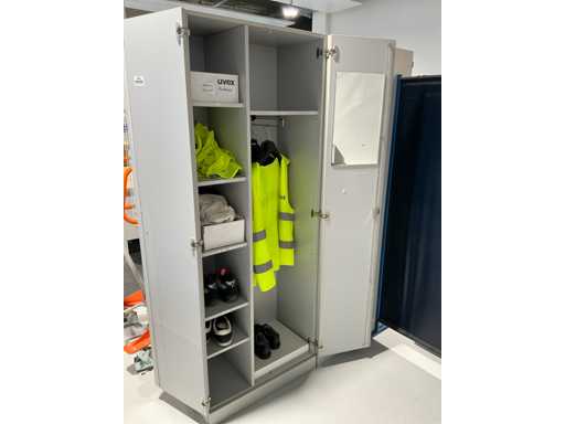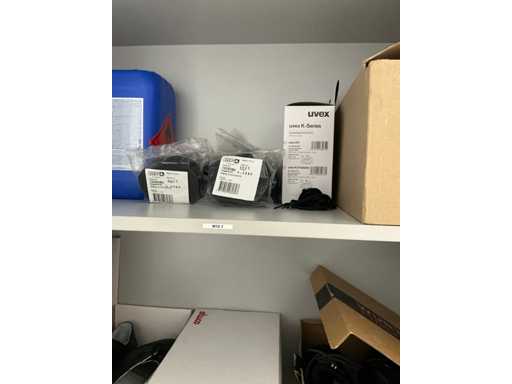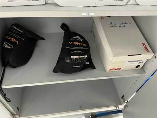 2-deurs, 4 planken, met inhoud (artikel over arbeidsveiligheid en -veiligheid), 1 wikkelbank ca. 1.200 x 400 mm