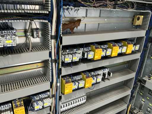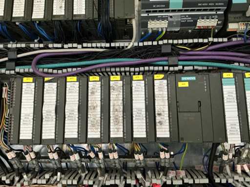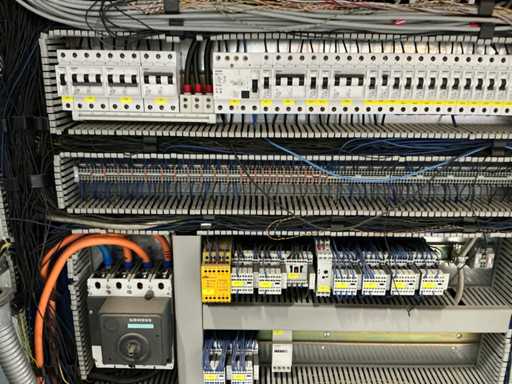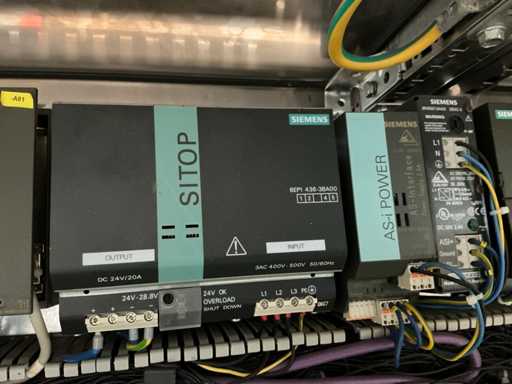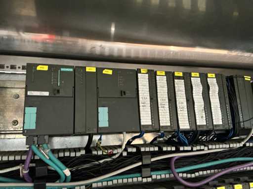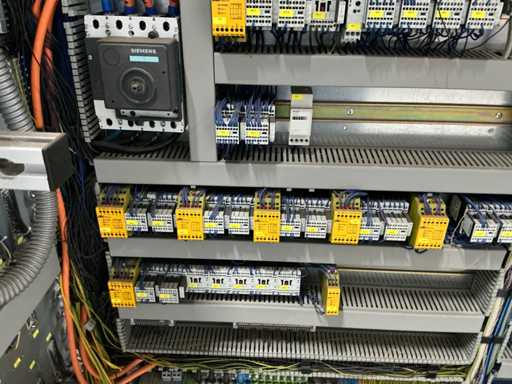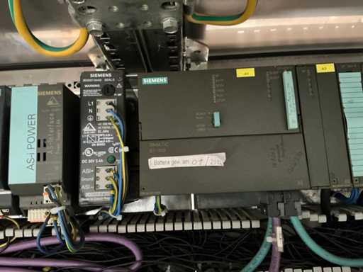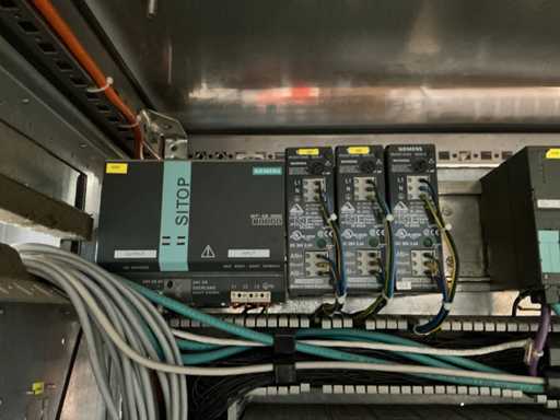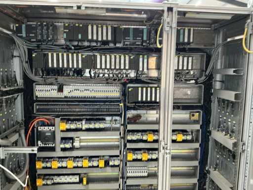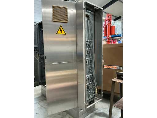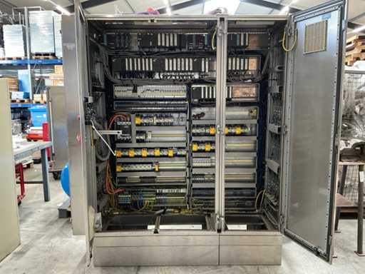 Roestvaststalen kast met diverse Siemens(Sitop en Simatic) apparatuur en divers schakelmateriaal, afmeting kast circa 2200x630x2400mm.