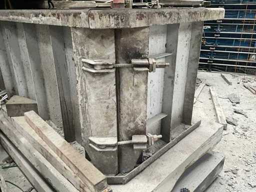 Betreft 1 betonblokmal voor "lego" blokken 160x80x80 cm, 4 stuks per mal. Inclusief stalen ondervloer!