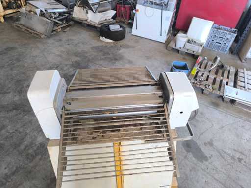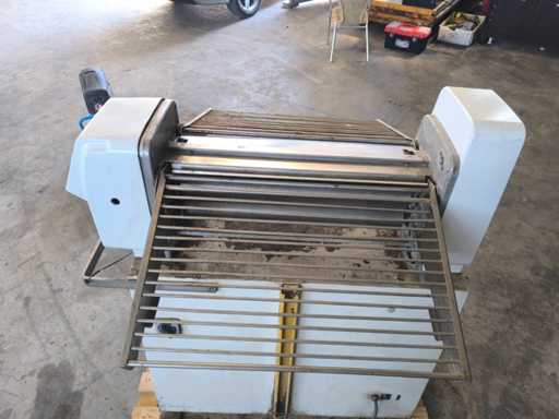 Deegvormer op basis van rollen voor het vormen van deeg tot uniforme broden; Twee rolstangen en verstelbare drukplaat.