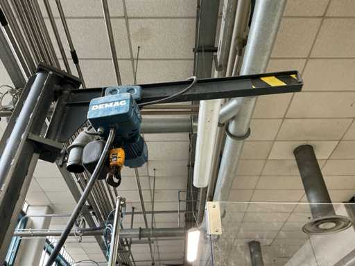 manipulator Met DEMAG-fokkraan en takel met een capaciteit van ca. 1500 mm en een bereik van 500 kg, kraanhoogte ca. 3000 mm
