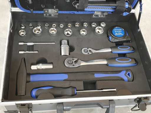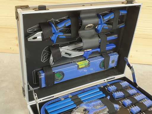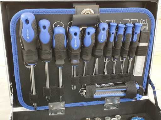 Metalen gereedschapskist compleet met alle apparatuur zoals op de foto