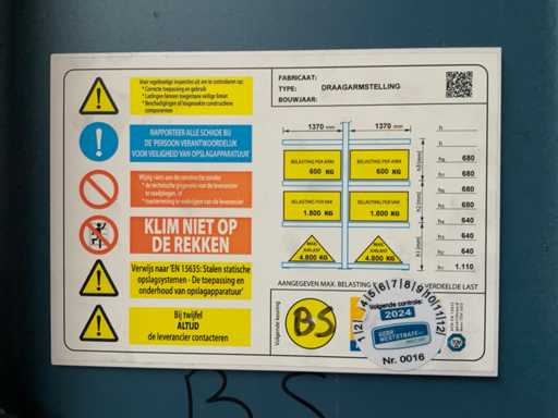 Bestaande elk uit: 3 kolommen, afmeting: H6020 x B3060 x L3450 mm, en 48 liggers.