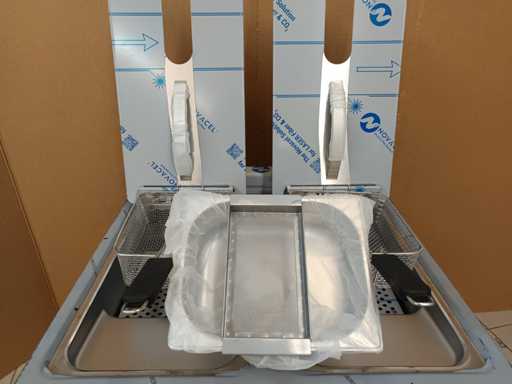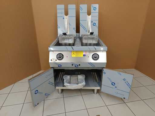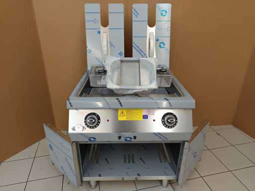 Vermogen: 21 kW • Aanvullende opmerkingen: Spanning: 400V AC 3N PE • Elektrische friteuse met twee bassins en oliecapaciteit van 2x14 L • Inclusief frituurmanden en deksels