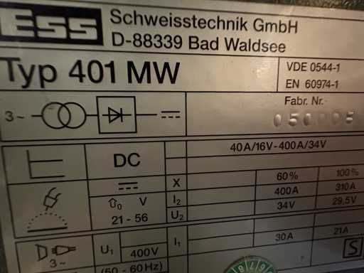 Fabrikant: ESS Schweißtechnik GmbH (Bad Waldsee, Duitsland)