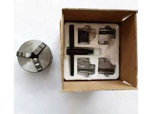 Chuck voor zelfcentrerende draaibank 3 + 3 kaken 100 mm, 3500 t/min, lichaam in geslepen gietijzer, afsluiting met spiraalvormige ring, concentrische handmatige klem, geharde kaken