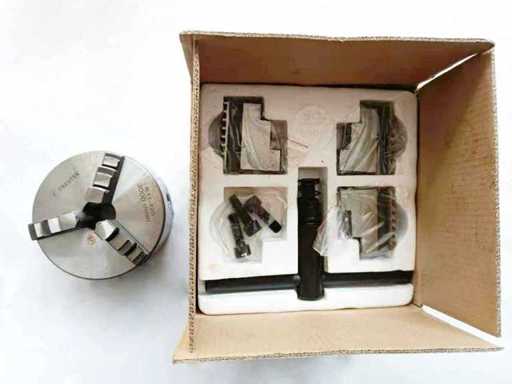 Chuck voor zelfcentrerende draaibank 3 + 3 kaken 125 mm, 3000 t/min, lichaam in geslepen gietijzer, sluiting met spiraalvormige ring, concentrische handmatige klem, geharde kaken