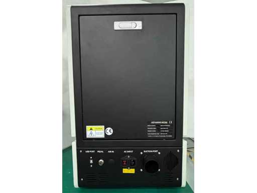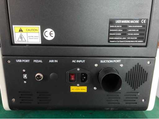 Nieuwe generatie compacte lasermarkers, met gemotoriseerde openings- en beschermingssensor voor veilige werking. 20W stroombron (verstelbaar), markeerveld 110 x 110 mm. Gemotoriseerde en handmatig bediende Z-as, eenvoudige en effectieve scherpstelling dankzij de dubbele rode lichtwijzer. Luchtkoeling, 220V voeding bij 50 Hz. Minimale reproduceerbare dikte 0,02 mm, snelheid tot 7000 mm/s. EZCAD2-software inbegrepen. Artikelmaat 730 x 500 x 850 mm. Voorwerp gewicht 75 kg.