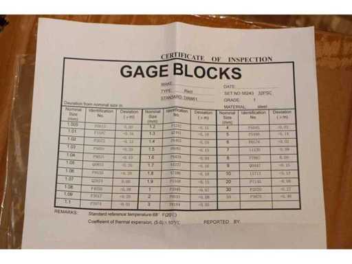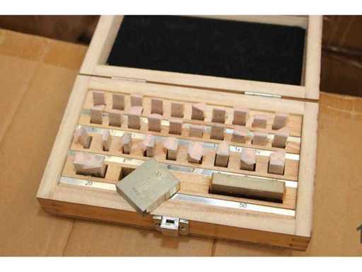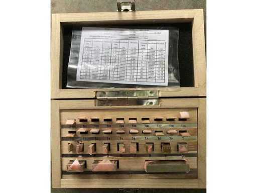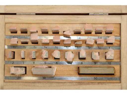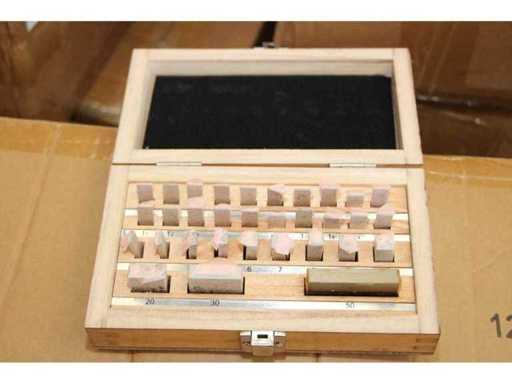 4 EENHEDEN/SETS VAN SDM0066 SAMEN GEPAKT. EEN ENKELE SDM0066 KOMT OVEREEN MET: Set bestaande uit 32 stalen spoorblokken, maten van 1,005 mm tot 50 mm. Bedrijfsreferentietemperatuur 20°C. Standaard gebruikte DIN861. Met houten doos inbegrepen.