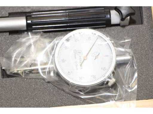 Boringsmeter compleet met indicator, verlengstukken en aambeeld.