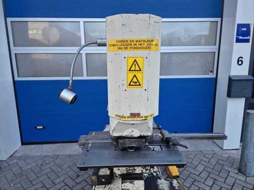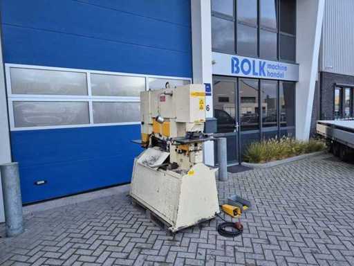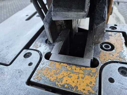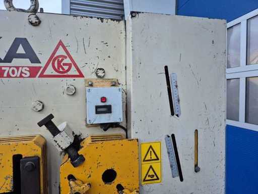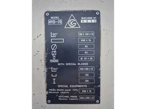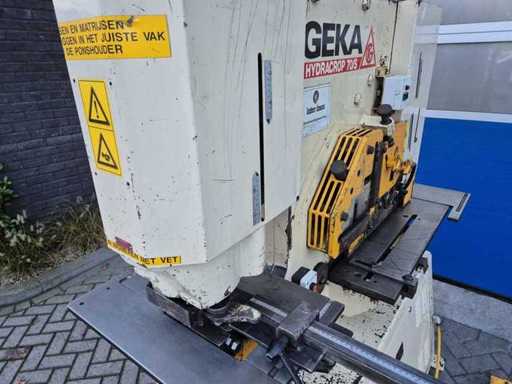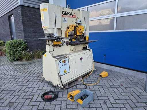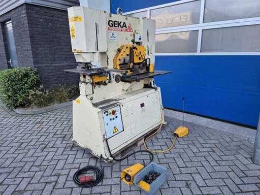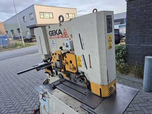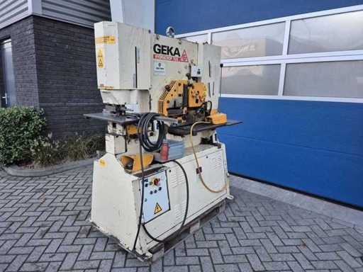 GEKA HYDRACROP 70/S pons- en knipmachine met uitkapfunctie; spanning 400 V; capaciteit 70 ton; capaciteit strip 450 x 15 mm; capaciteit hoeklijn 130 x 130 x 15 mm; capaciteit massief rond 45 mm; capaciteit ponsen 28 x 20 mm; gewicht ca. 2200 kg.