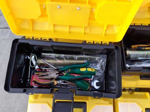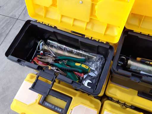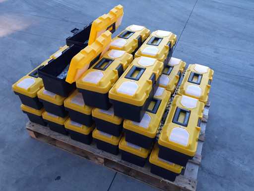 Partij diverse apparatuur, bestaande uit 30 plastic kratten met inhoud