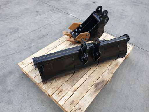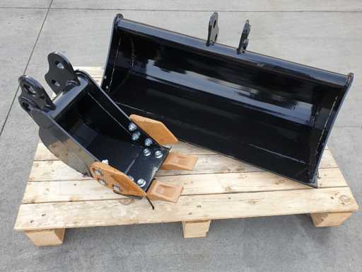 Kit bestaande uit 2 baken voor graafmachines: graafbak 200 mm + vlakbak 800 mm, Ø25 mm koppeling voor alle JPC graafmachines van mod ht12 tot mod ht20, nooit gebruikt