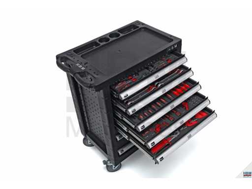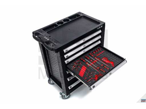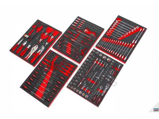 De gereedschapskar is uitgerust met 196 gereedschapsonderdelen: