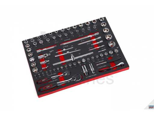 3 sets doppen: 1/4" van 4 - 14mm, 3/8" van 6 - 22mm en Torx van E10 - E20, 1/2" van 8 - 32mm.