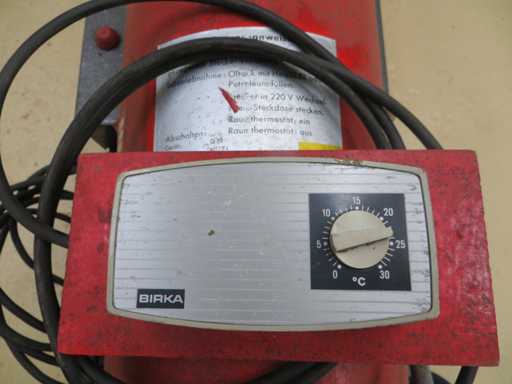 Verkoop een HEYLO D20 warme luchtkachel (olieverwarmer) met externe BIRKA kamerthermostaat. Het apparaat is ideaal voor het verwarmen van werkplaatsen, bouwplaatsen of hallen en overtuigt door zijn robuuste ontwerp. Specificaties