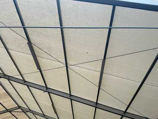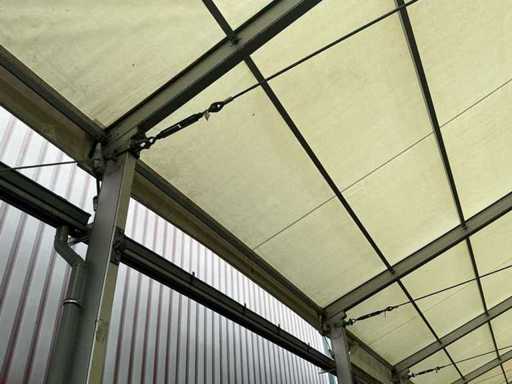 Beschikt over 46 aluminium staanders, spandraden, verlichting en een dakzeil.