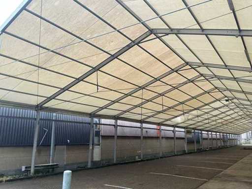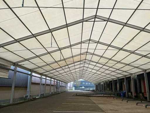 De tent dient door de koper zelf te worden gedemonteerd en afgevoerd. Heftruck is hiervoor aanwezig.