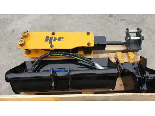 Universele kit voor 25 mm as mini-graafmachine, bestaande uit hamer, 200 mm vijzel, snelontgrendeling, 200 mm bak en 800 mm bak, nooit gebruikt