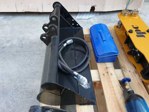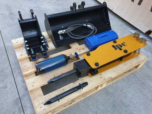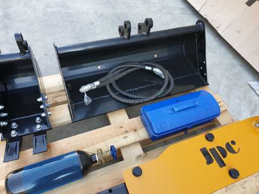Lot bestaande uit hydraulische hamer voor JPC-graafmachines (behalve HT25) + 200 mm bak + 800 mm bak Ø25 mm trekhaak, nooit gebruikt
