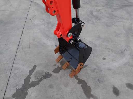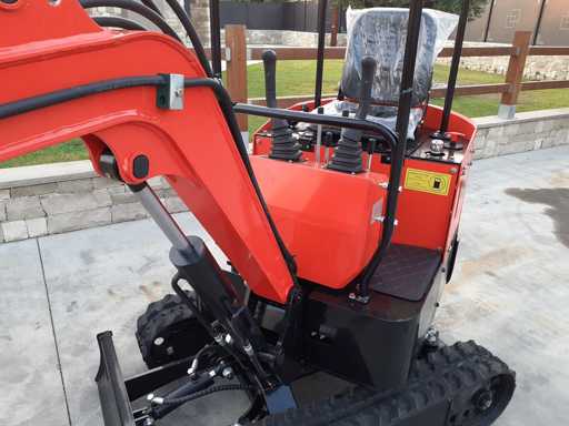 Mini-rupsgraafmachine, compleet met graafbak, elektronische ontsteking, rubberen rupsbanden, 360 graden continu draaiende koppelschotel, trekhaak en bediening voor hamer. Nooit gebruikt 0 uur