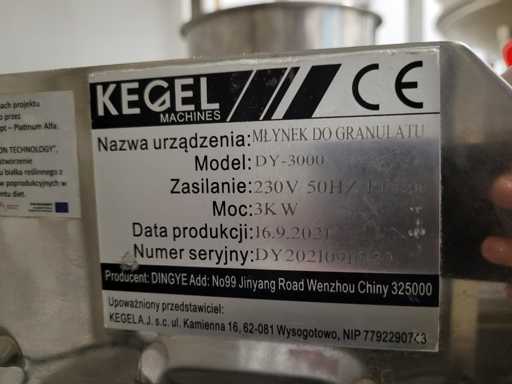 KEGEL DY 3000 Roestvrijstalen granulaatmolen