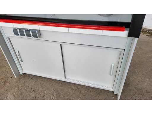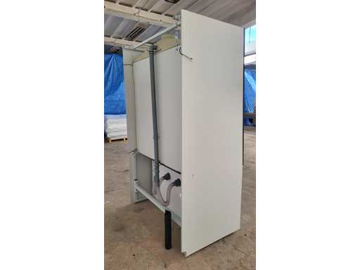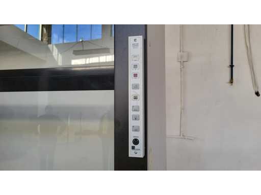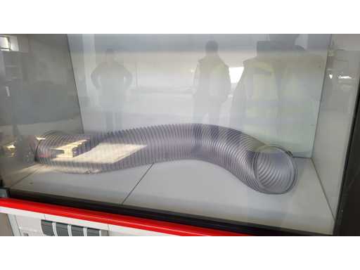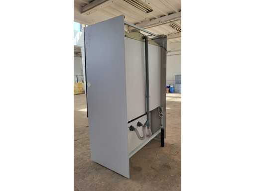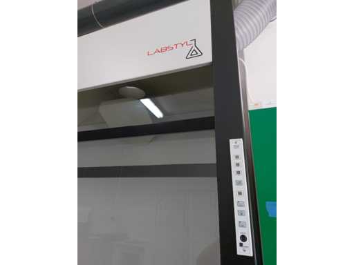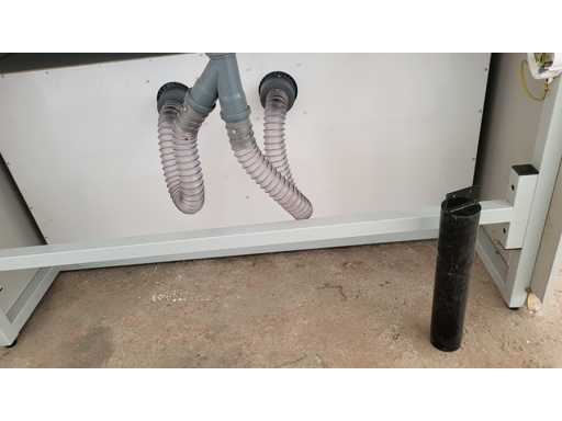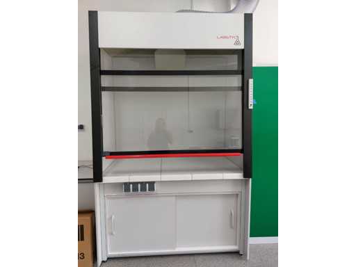 De dampafzuigkap is gemaakt van 18 mm dik, dubbelzijdig gelamineerd plaat en rust op een 40/40 stalen frame. De stalen constructie wordt gezandstraald en vervolgens poedergecoat met een chemisch bestendige epoxyverf. Onder het aanrecht bevindt zich een gelamineerde en geventileerde kast voor kortdurende opslag van chemicaliën, waarvan de binnenkant is bekleed met chemisch bestendig plastic. Een CVS-systeem wordt gebruikt om schadelijke dampen en stof te verwijderen. Het raam is gemaakt van geanodiseerd aluminium en is voorzien van ESG type C veiligheidsglas dat voldoet aan de PN-EN 12150-1:2015-11 standaard.