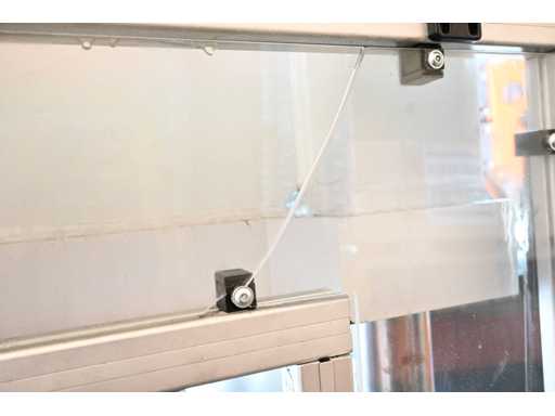 roterende indextafel en hydrauliek gedemonteerd; Plexiglazen ruit met breekpunt