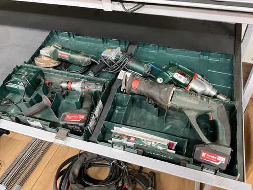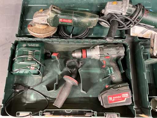 Bestaande uit: 2x haakse slijpmachine, boormachine, reciprozaag en schroefboormachine