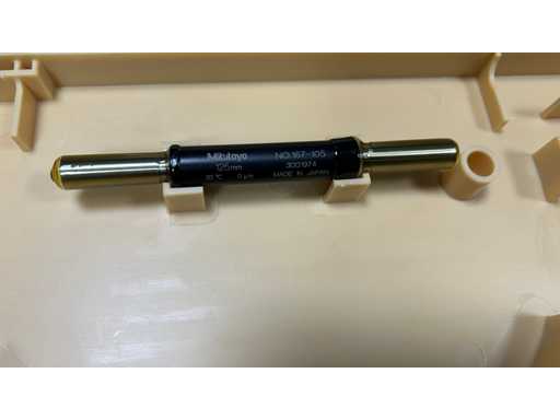bereik bereik: 125–150 mm • Nauwkeurigheid: 0,01 mm • Standaard: 20°C, 0 μm • Kalibratiewig inbegrepen • Mitutoyo harde behuizing.