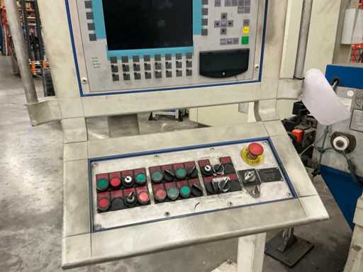 bestaande uit Satzinger Hydro F160 bandstaal decoiler, Müller BRM II L richtmachine met bandbreedte 10-200mm & maximale banddikte 3mm, mechanische pers met uitloop naar plooistation, Wemo plooistation, schuinliggende afvoertafel, compleet met hekwerk, hydraulische aggregaten, schakelkast, totale lengte lijn circa 24m, zonder matrijzen
