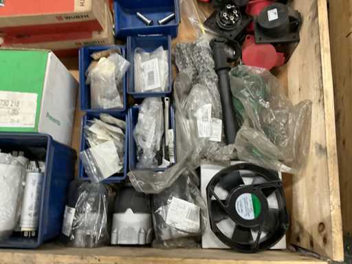 Onder andere condensatiren, krachtstroomstekkerdozen, zekeringautomaten, etcetera, Uit pallet, zonder pallet/palletrand