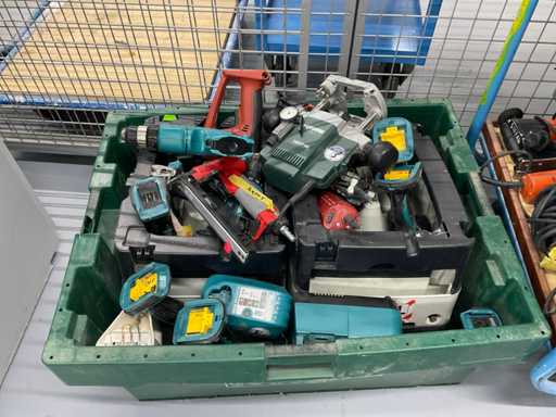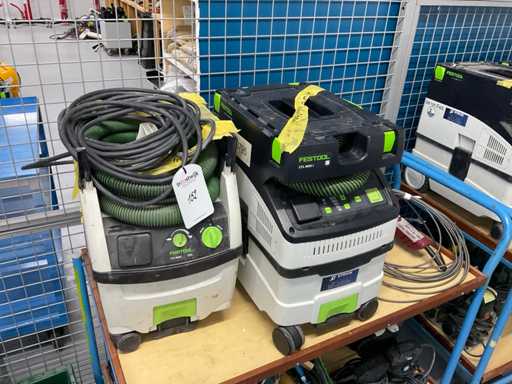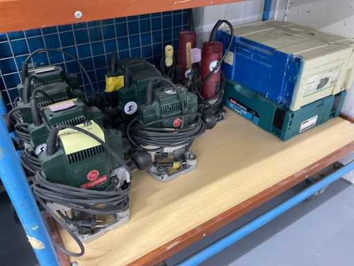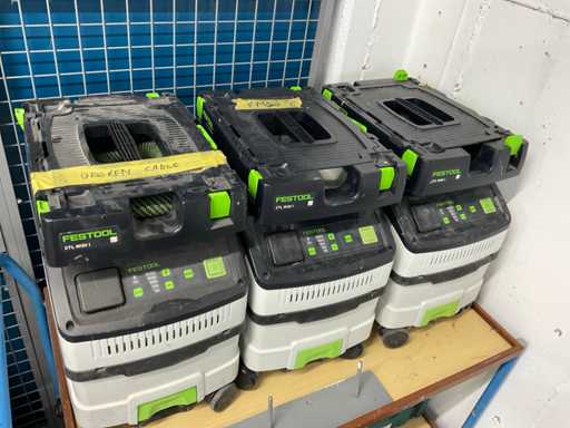 Waaronder: festool stofzuigers, lamello freesmachines, Metabo bovenfrezen, accu machines etcetera, in kunststof kist en op 2 transportwagens, transportwagens zijn niet inbegrepen!