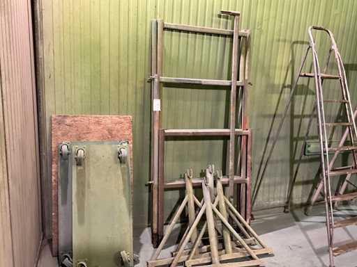 Waaronder 2 metalen wagens, 4 metalen steunen en 4 stelling toebehoren