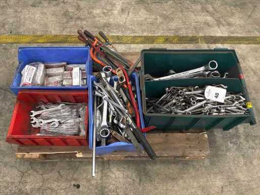 Diverse handgereedschappen waaronder: verschillende maten steeksleutels (“46,”32”16,”17,),handzagen, vijlen en Atexor led drivers.