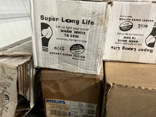 Waaronder: “Philips” TL buizen, “Osram” 80W