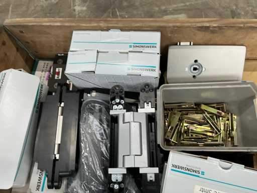 Partij saloondeur scharnieren, bevestigingsmiddelen en divers
