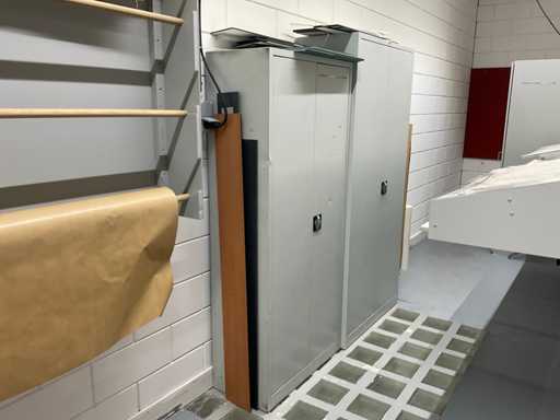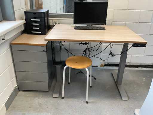 w.o. elektrisch bureau; mobiele kast met inhoud; rolhouder; stalen werkplaatskasten met inhoud etc.