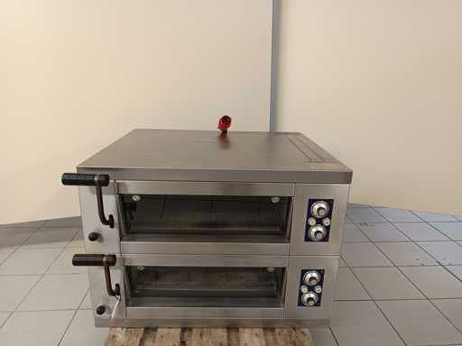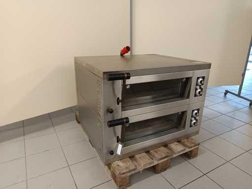 Dubbeldeks elektrische pizzaoven met onafhankelijke bedieningspanelen voor elk dek