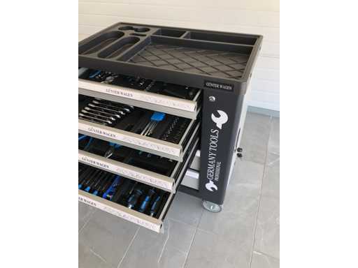 Gereedschapswagen compleet met alle gereedschappen zoals op de foto, chroom-vanadiumsleutelkwaliteit, nooit gebruikt en verpakt in de originele