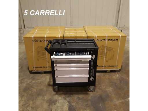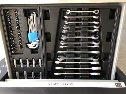 Set van 5 gereedschapswagens, compleet met alle gereedschappen zoals op de foto, chromen vanadiumkwaliteitssleutels, "in originele staat" verpakt in de originele