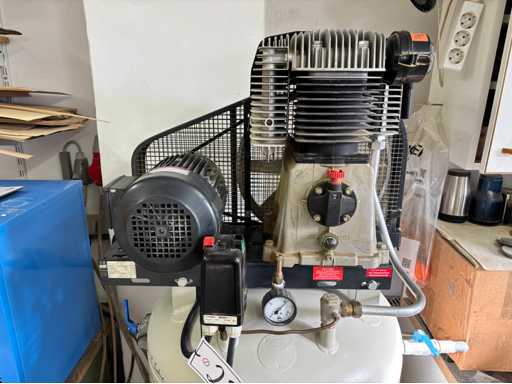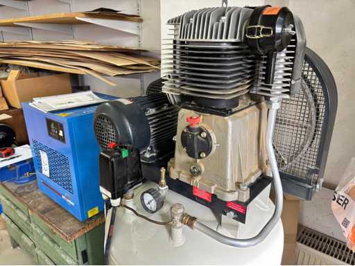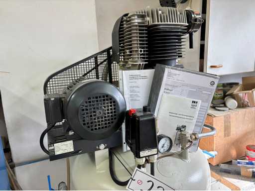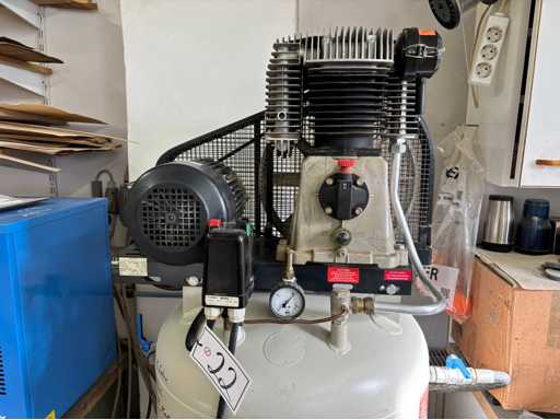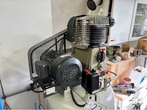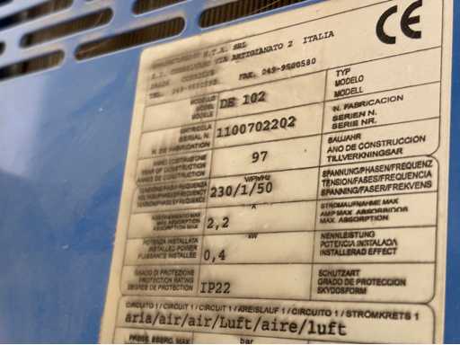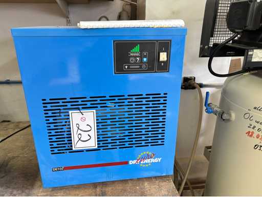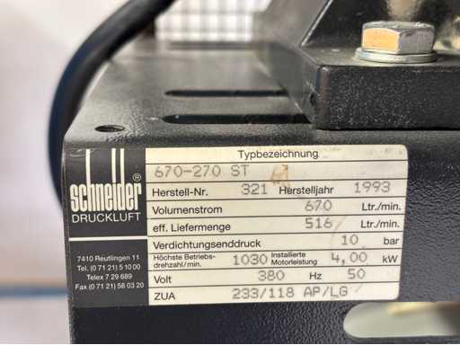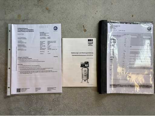 Machine nr. 321, motor ca. 4 kW, volumestroom ca. 670 Ltr./min., druk ca. 10 bar, tank en luchtdroger (Het artikel is in staat als bestaande en ongetest. De kosten voor demontage en laden zijn bindend en het item wordt verkocht zonder inhoud/materiaal!)