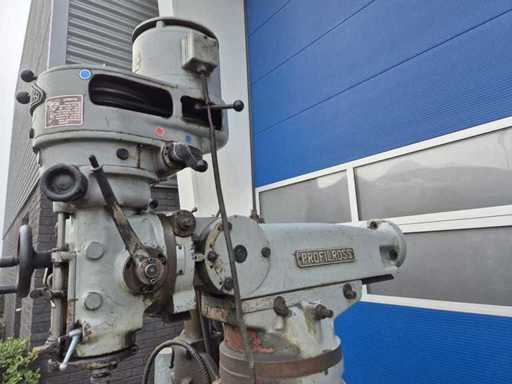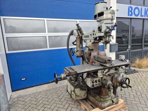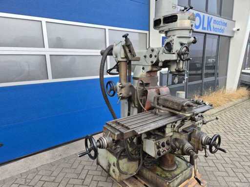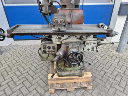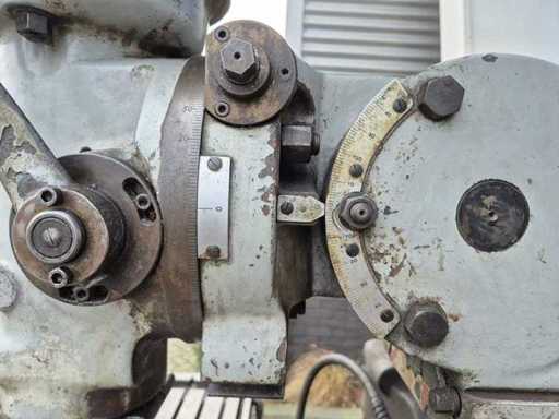 SIMA-ROSSI bridgeport freesbank; bouwjaar 1966; serienummer 1627; opname ISO 30; 80 snelheden; toerentalbereik 80–2.860 rpm; T-gleuf 14 mm; verplaatsing ca. X-as 800 mm, Y-as 250 mm, Z-as 400 mm; voorzien van koelmiddelpomp; motorvermogen 1,8 kW; aansluiting 380 V; machinegewicht ca. 1.500 kg.